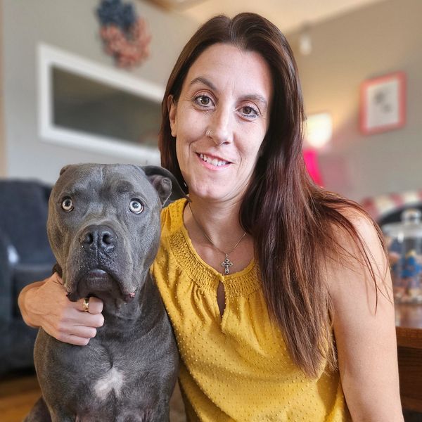 Zeus is my 3rd dog to be used for animal assisted therapy. He is an American Pitbull Terrier and turned 2yrs old in May 2025. Zeus's nickname is "wigglebutt" from wiggling so hard when he sees his friends. He always has something to say, he gives love nibbles on your ears...to those who let him, and will remind you he has treats in his container every time you visit the center.